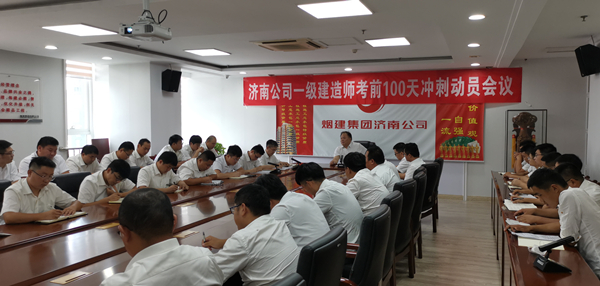 2022年8月18日下午,濟南公司在駐地會(huì )議室召開(kāi)2022年一級建造師考前沖刺動(dòng)員會(huì ),總經(jīng)理、分管副總經(jīng)理、人力資源負責人及2022年一級建造師考試人員等共計50余人參加會(huì )議,外埠項目考生視頻參會(huì )。